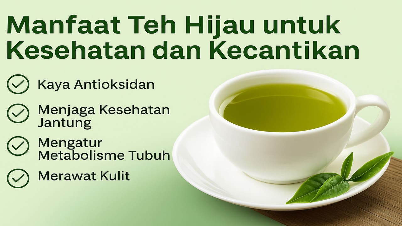 Manfaat teh hijau tidak hanya terbatas pada kesehatan organ dalam, tetapi juga kecantikan kulit. Kandungan antioksidannya membantu melawan tanda-tanda penuaan dini seperti kerutan dan garis halus. Dengan rutin mengonsumsi teh hijau, kulit dapat lebih terlindungi dari kerusakan oksidatif akibat paparan polusi dan sinar ultraviolet.